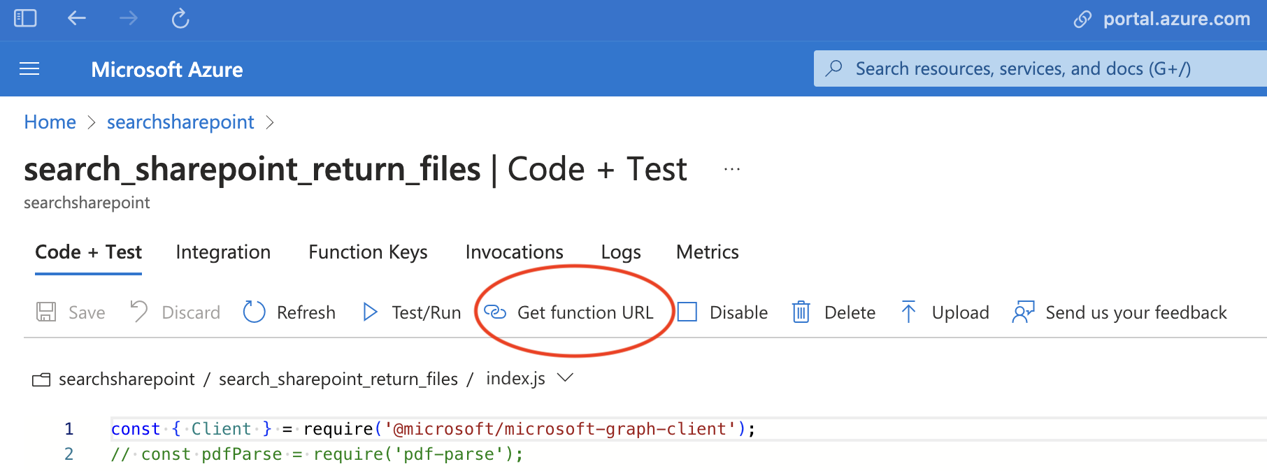 Click on the function you just created (You may need to click refresh to see it). Click on Get Function URL and save it to test in Postman. You will also use this when creating the OpenAPI spec later when you put it into the GPT.